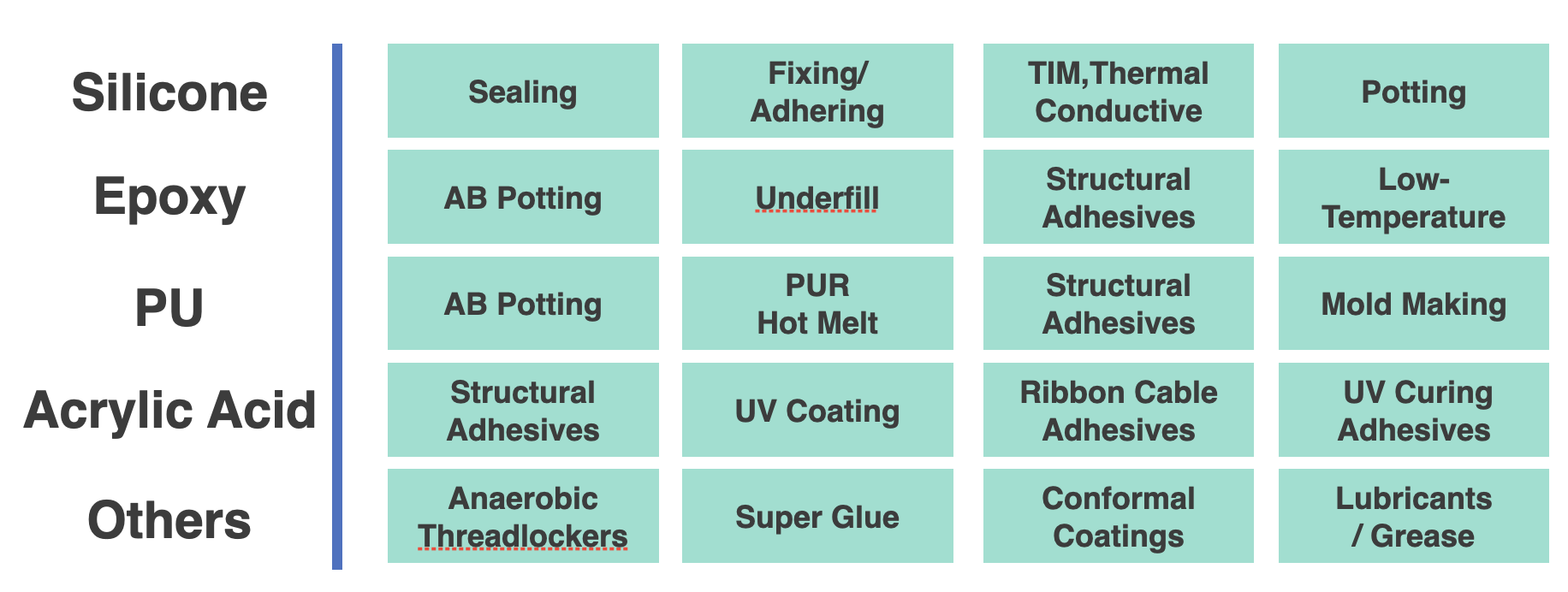 Founded in 1983, our company has extensive experience in epoxy resins, silicone adhesives, UV adhesives, and PU resins. Our products offer excellent weather resistance, chemical stability, and safety, meeting requirements for adhesion, tensile strength, compression resistance, shock absorption, impact resistance, voltage resistance, and low dielectric constant. We can also customize products to meet customer requirements, including specific properties and colors, to provide the most satisfactory service.
